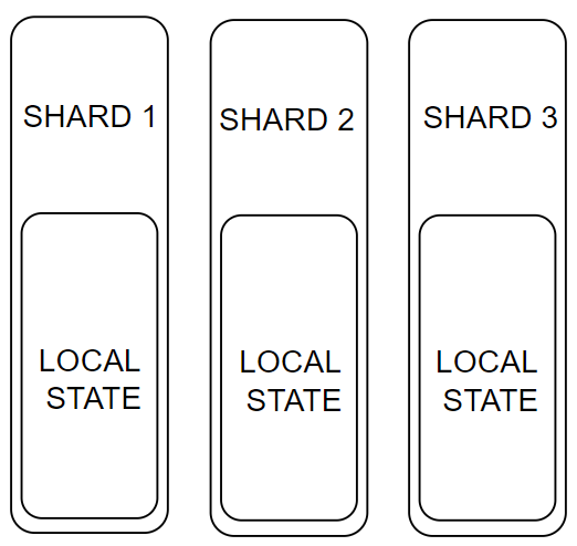 Mỗi sharding duy trì một phần của trạng thái global. Đây được gọi là trạng thái địa phương. Trạng thái global của toàn bộ Blockchain khi đó là tổng hợp của tất cả các trạng thái cục bộ này.